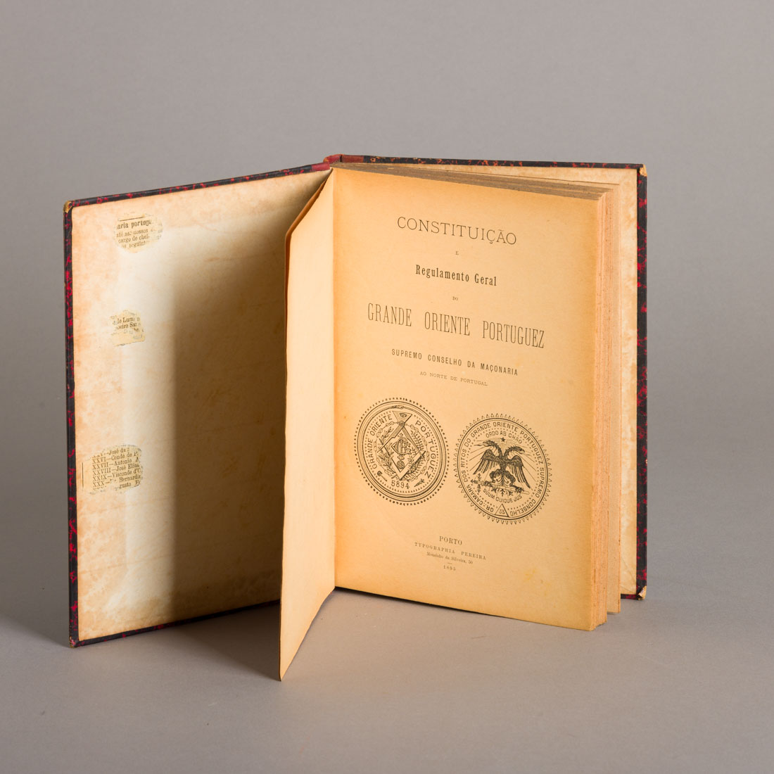 Constituição de Regulamento geral do Grande Oriente Português, Supremo Conselho da Maçonaria ao Norte de Portugal, Porto, 1895, 255 páginas. Sinais de uso e pequenos defeitos.