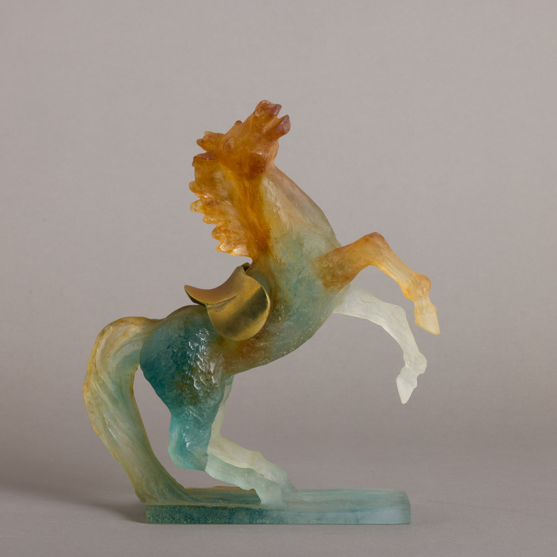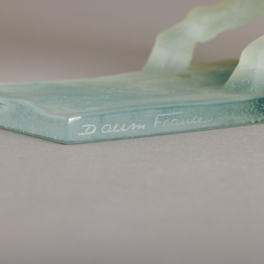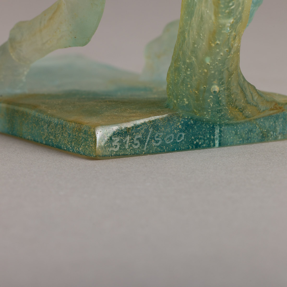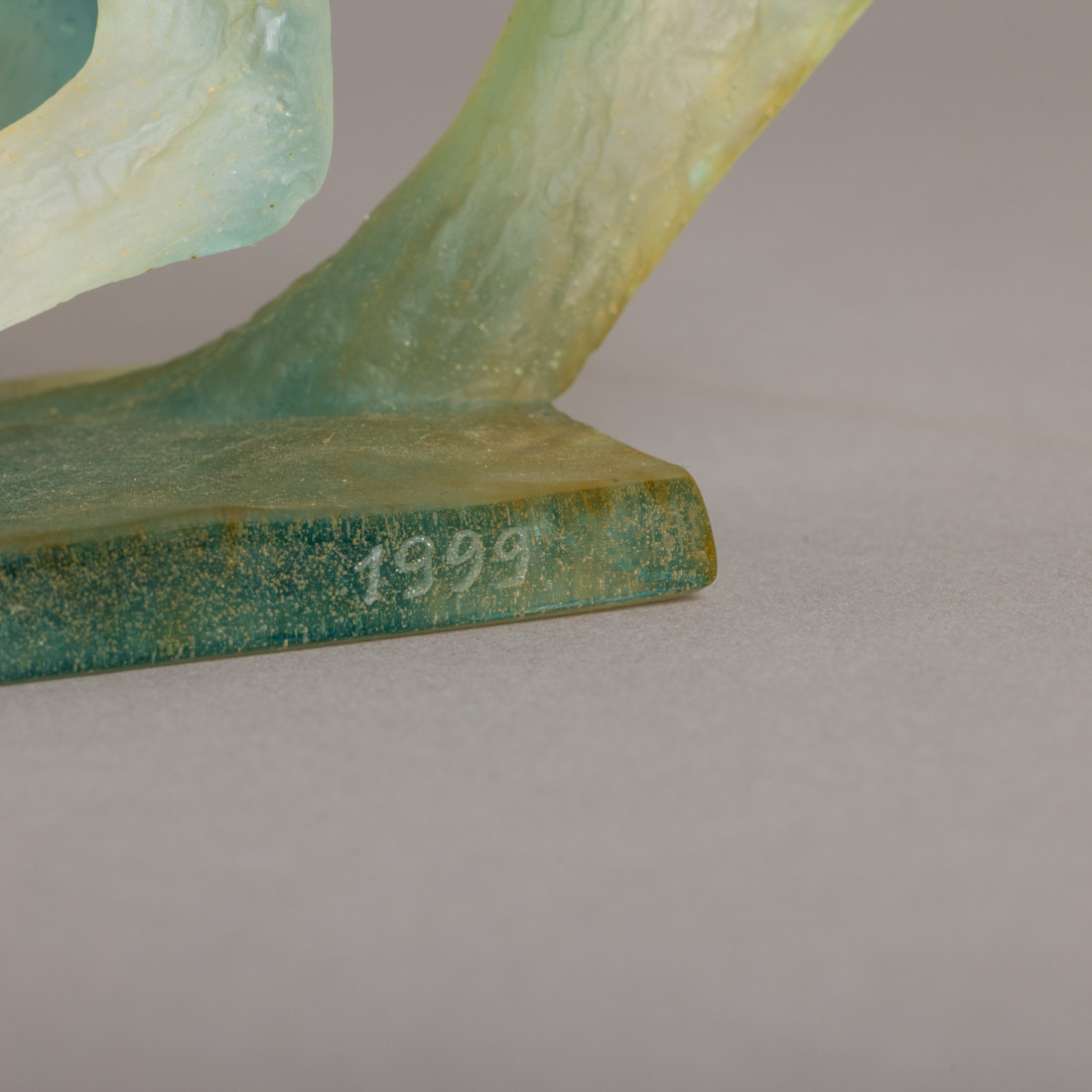 Escultura em pasta de vidro policromado, sela em metal amarelo. Marcada Daum France - 1999 e numerada 315/500. Sinais de uso.