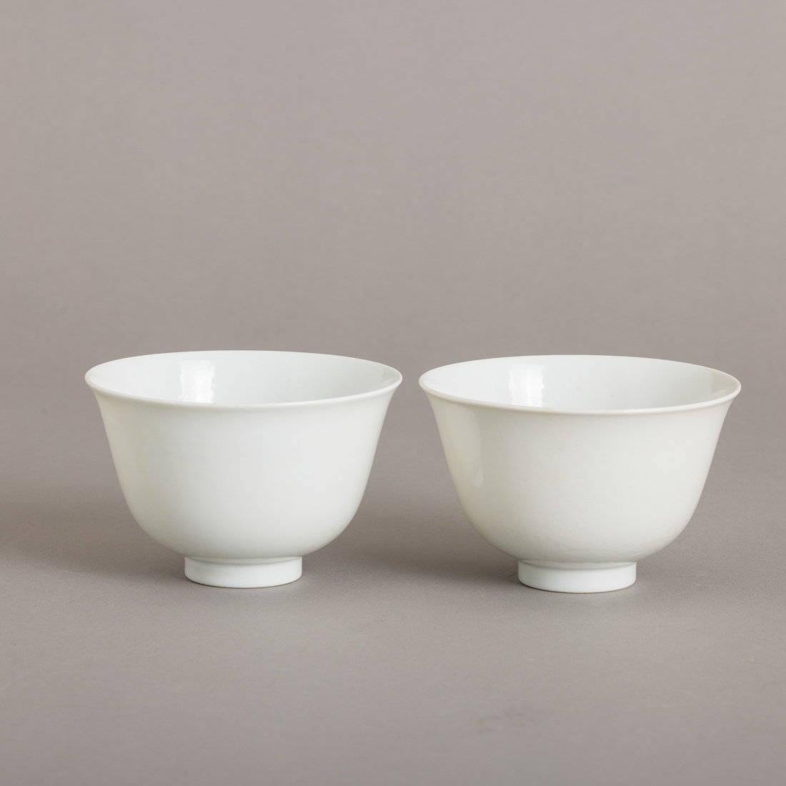 Em porcelana da China, decoração monocroma a branco. Marcadas. Sinais de uso.