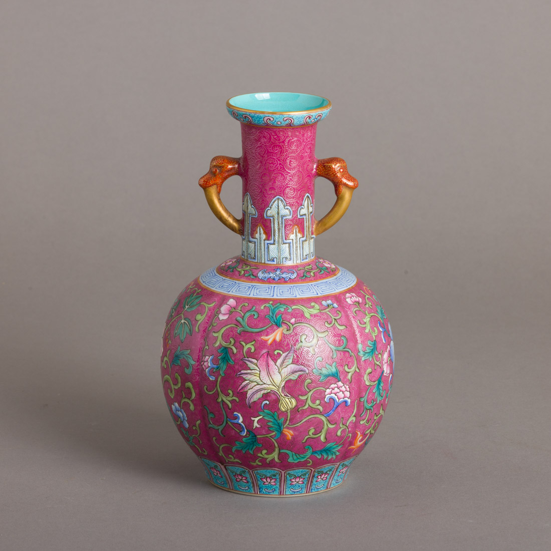 Em porcelana da China, decoração policromada e dourado "flores e elementos vegetalistas". Marcada. Sinais de uso.