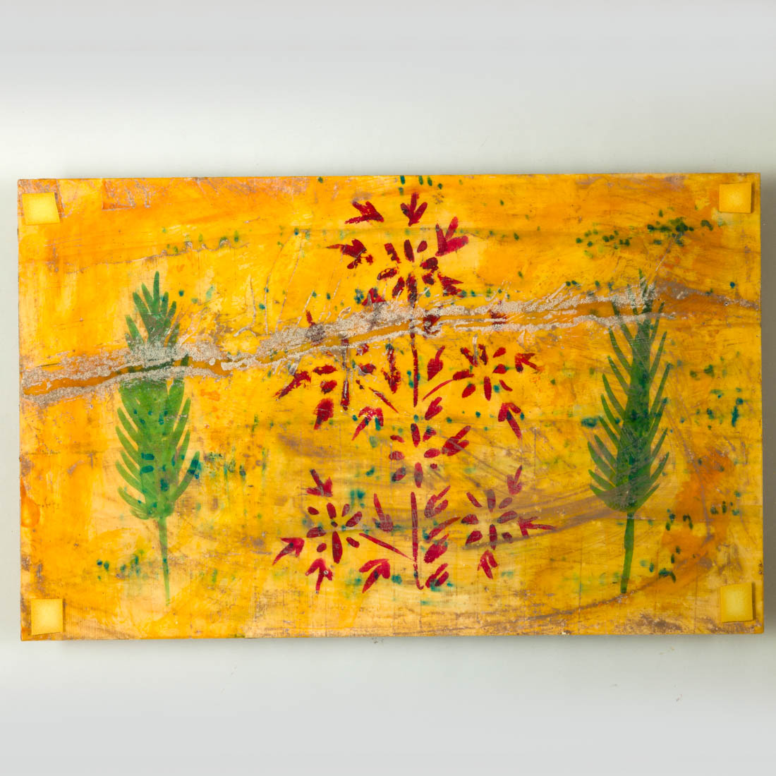 Pintura sobre placa de marfim, frente e verso. Índia. Emoldurado. Pequenas falhas na pintura