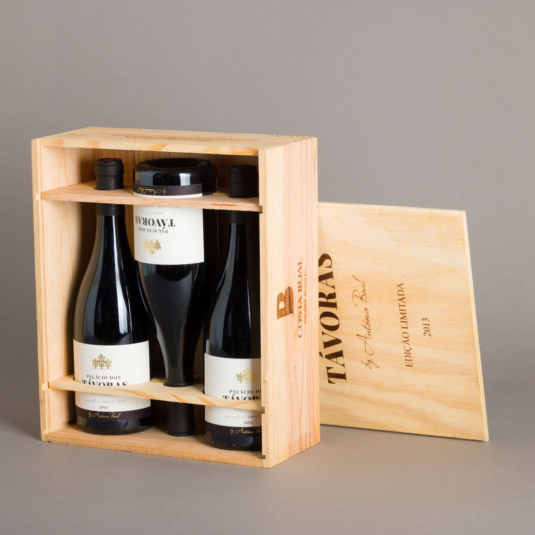 Três garrafas 750ml, caixa original em madeira.