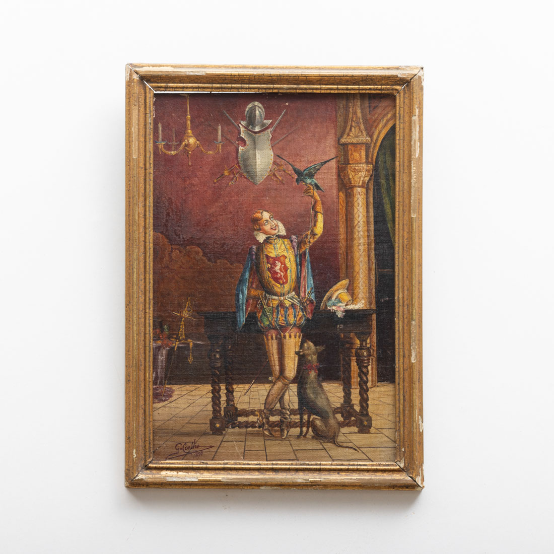 Óleo sobre tela colado em cartão, assinado G. Coelho e datado 1890.