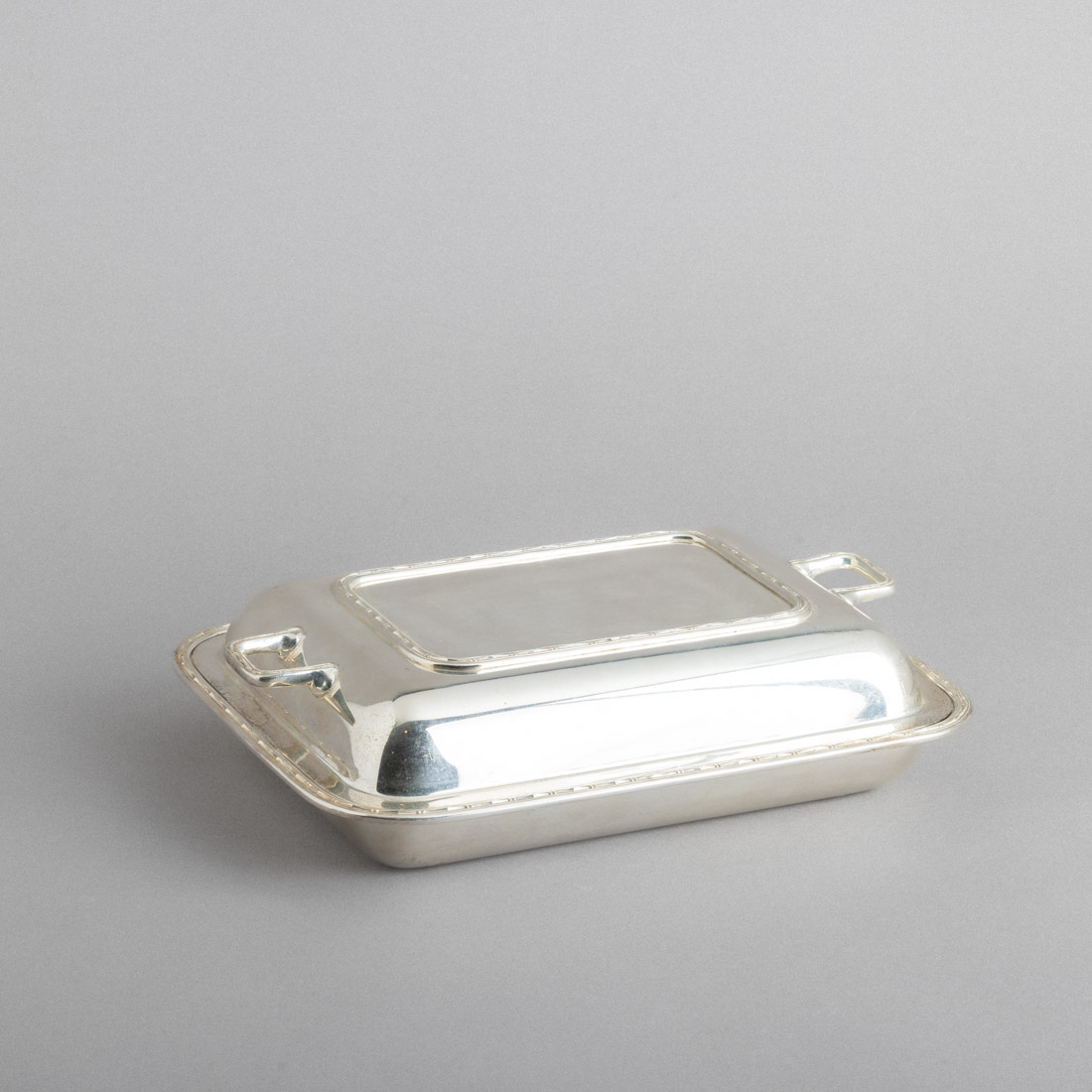 Em metal prateado, decoração com frisos relevados. Sinais de uso.