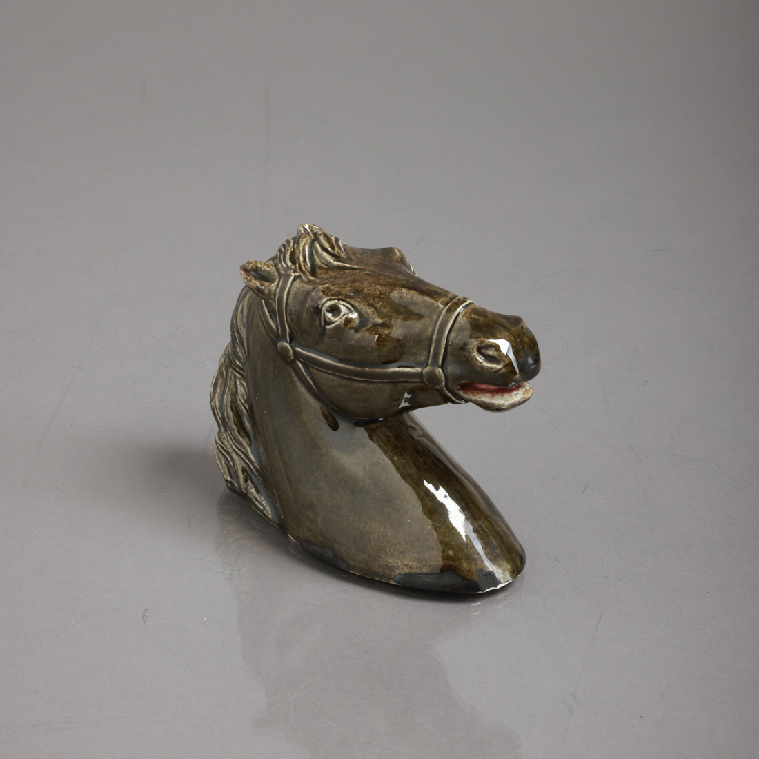 Em cerâmica vidrada das Caldas, marcada a carimbo Bello, decoração monocroma a verde. Pequenas falhas e esbeiçadelas.