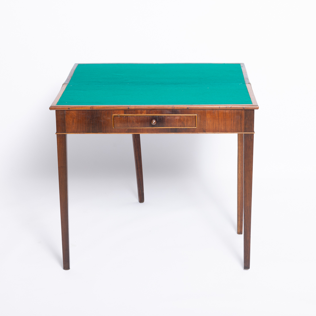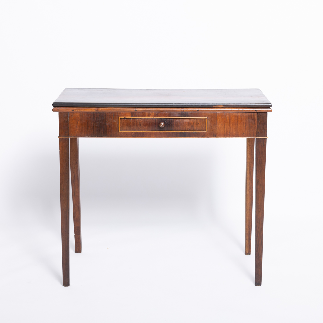 Em pau santo e outras madeiras, cintura folheada a pau santo com pequena gaveta. Pequenos defeitos e pequenos restauros.