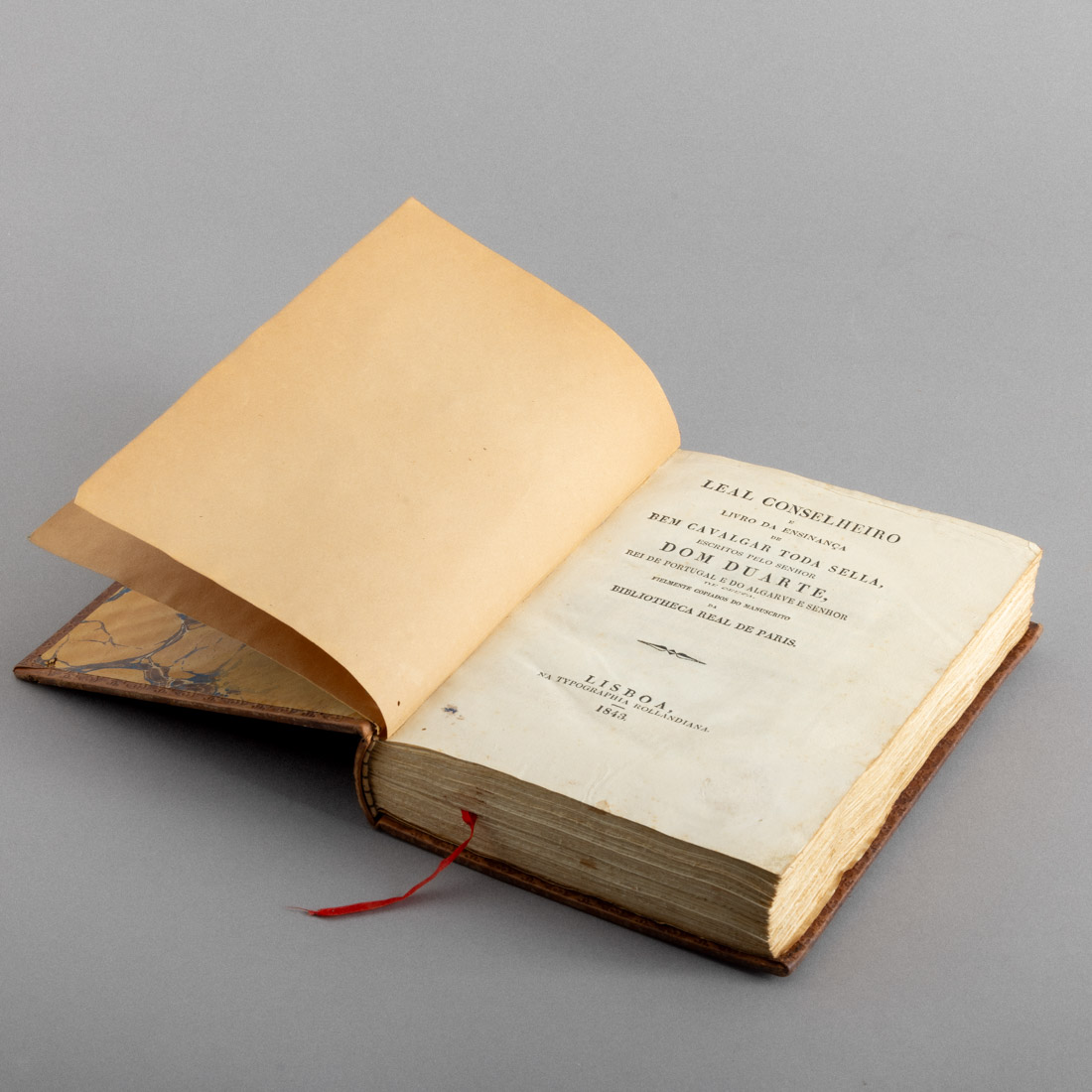 Livro da Ensinança de Bem Cavalgar Toda Sella, escritos pelo Senhor Dom Duarte, Rei de Portugal e do Algarve e Senhor de Ceuta. Fielmente copiados do manuscrito da Biblioteca Real de Paris, Lisboa na Typographia Rollandiana, 1843, Sinais de uso e de humidade.