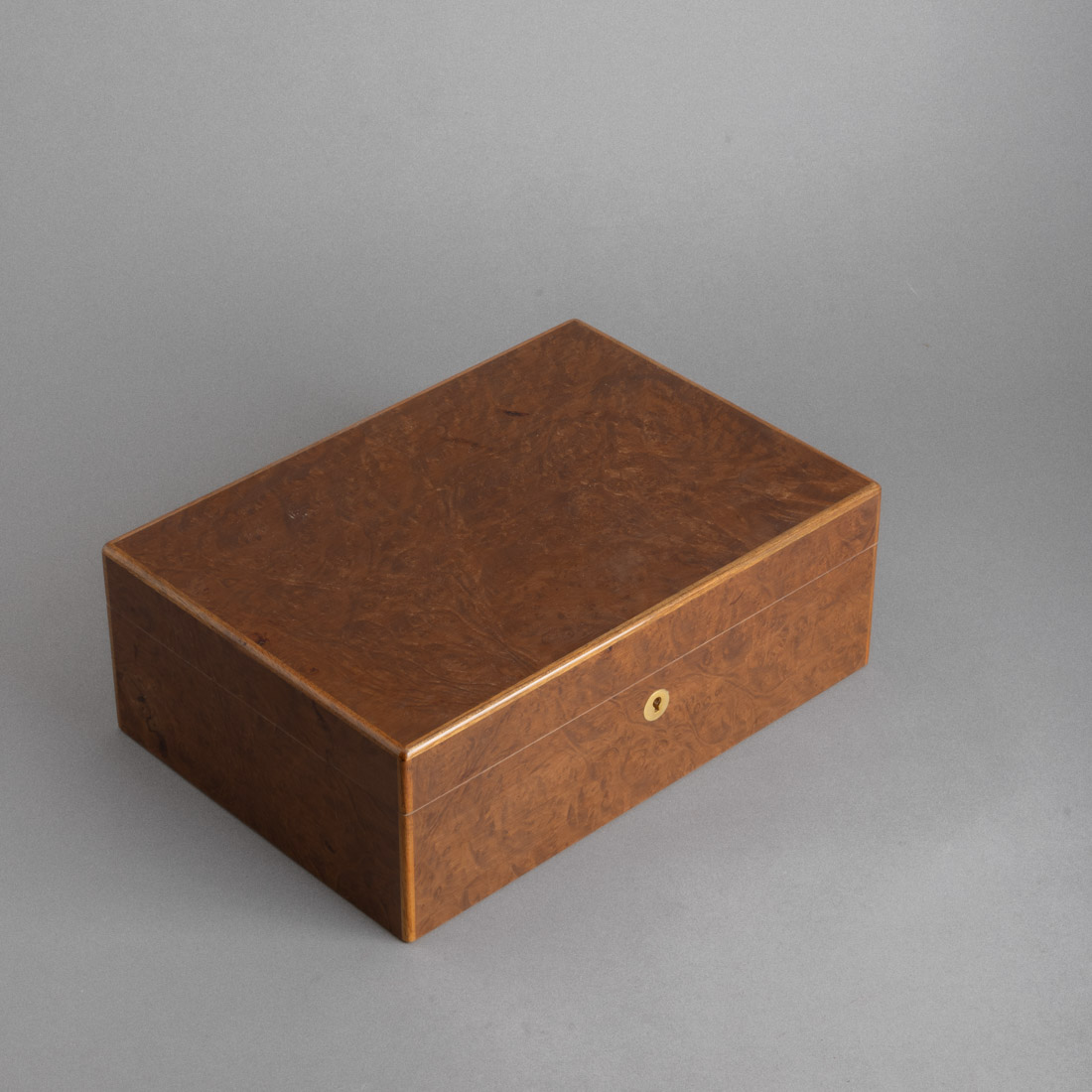 Em madeira, faixas em ouro de 9Kt e outros materiais. Fabricados na Irlanda. Com caixa expositora original folheada a raiz de nogueira.