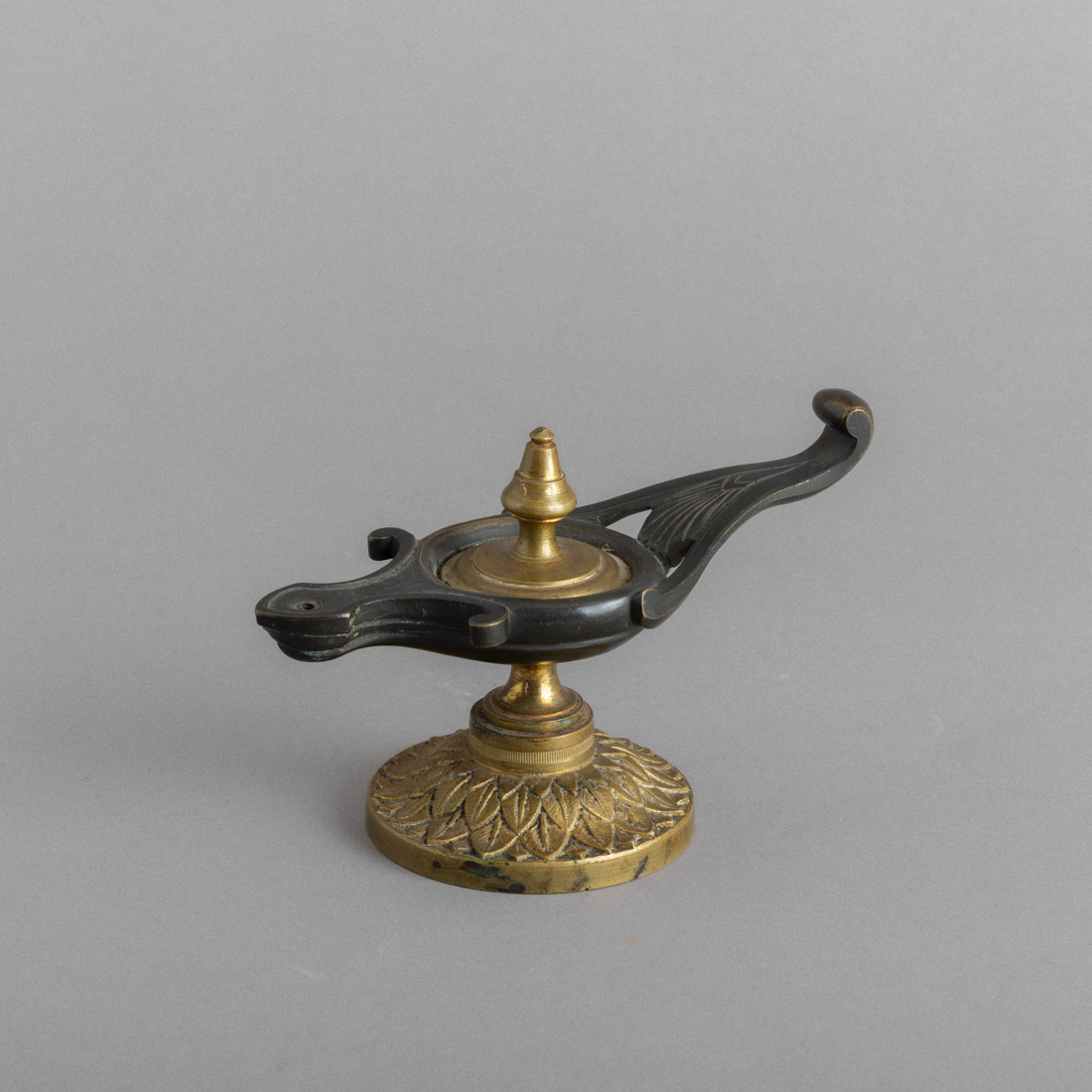 Em metal patinado e dourado, decoração relevada "elementos vegetalistas". Sinais de uso.