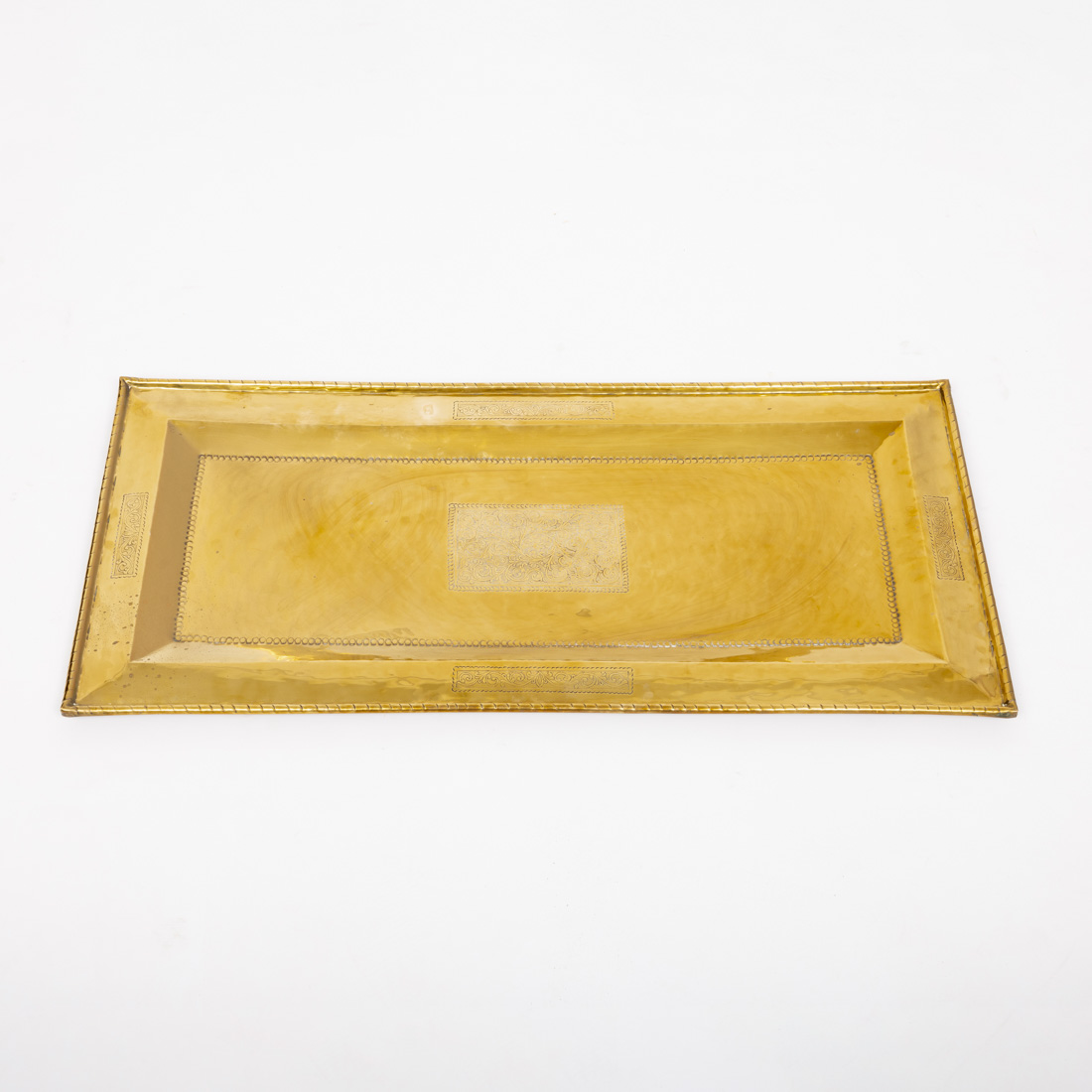 Em metal amarelo, decoração com gravados vegetalistas. Sinais de uso e pequenas amolgadelas.