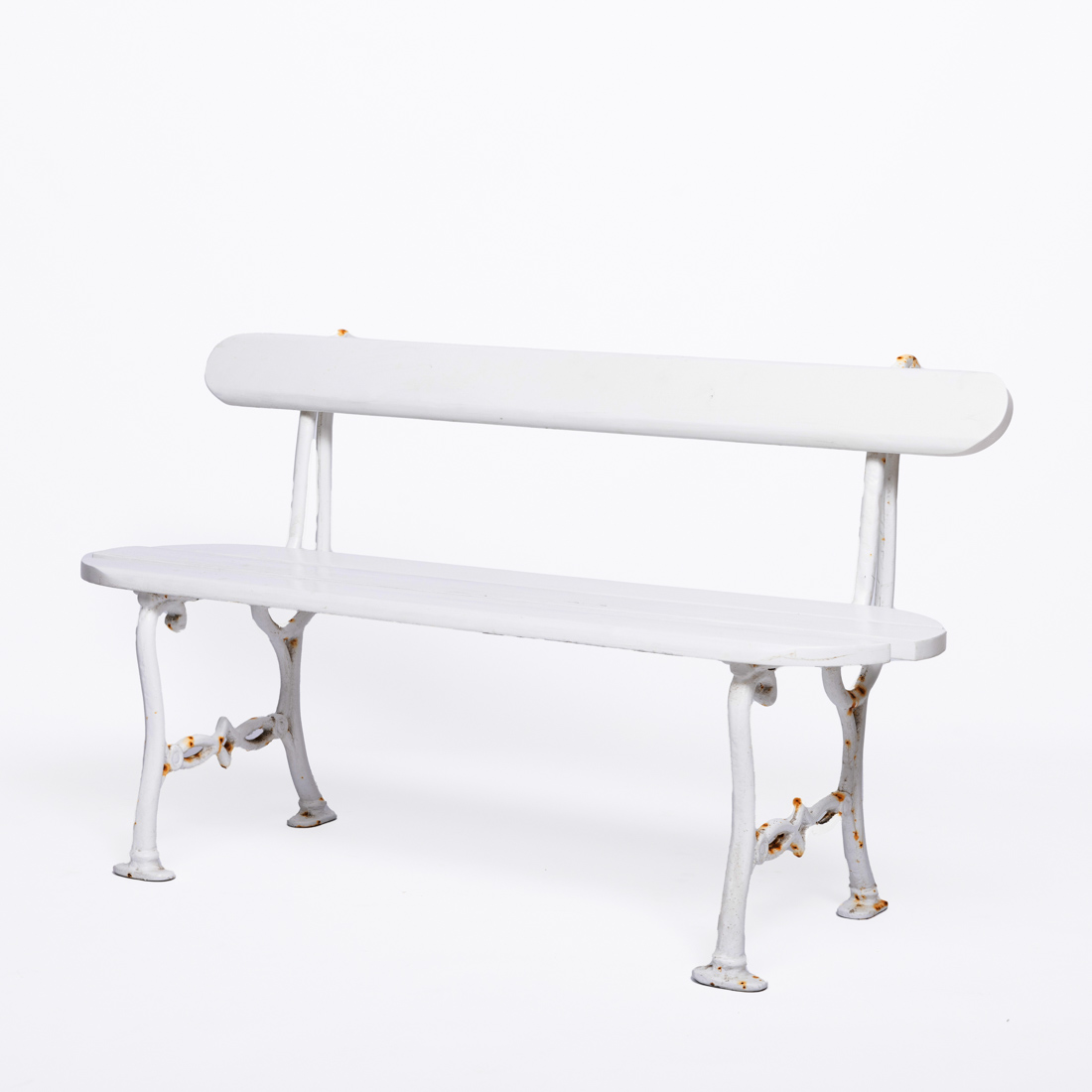 Em ferro e travessas em madeira pintado a branco. Pequenas falhas e defeitos.