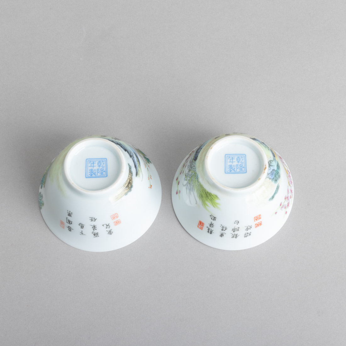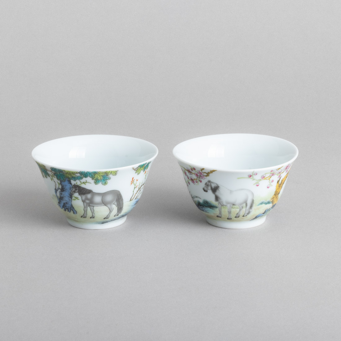 Em porcelana da China, decoração policromada "paisagem com cavalo e caracteres". Marcada. Sinais de uso.
