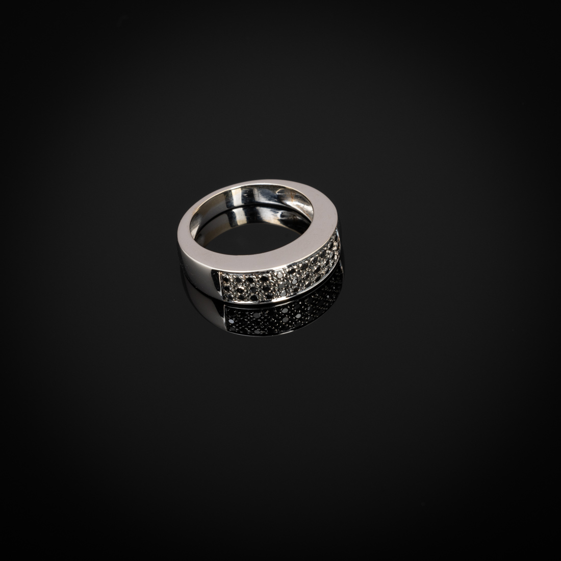 Em ouro branco português de 19,2Kt., contraste veado (pós 1985) cravejado com diamantes negros talhe brilhante. Sinais de uso.