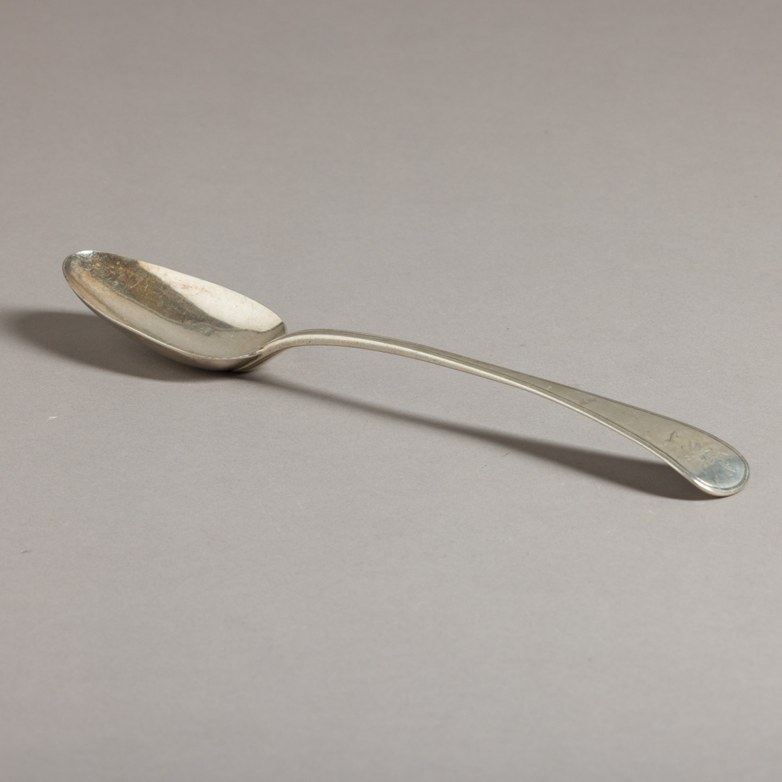 Em prata portuguesa do Séc. XIX de 917, marca de ensaiador do Porto (P-23) Alexandre Pinto da Cruz e de ourives (P-162) datável de 1810-1836, decoração gravada com elmo e timbre heráldico. Sinais de uso.