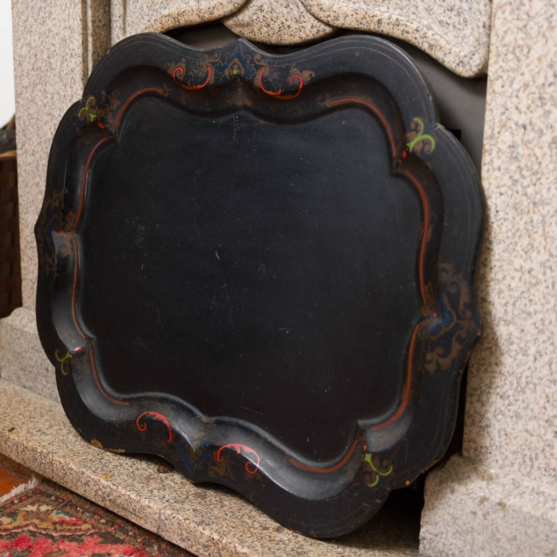 Em papier maché lacado a negro, decoração policromada e dourada. Séc. XIX. Falhas e defeitos.