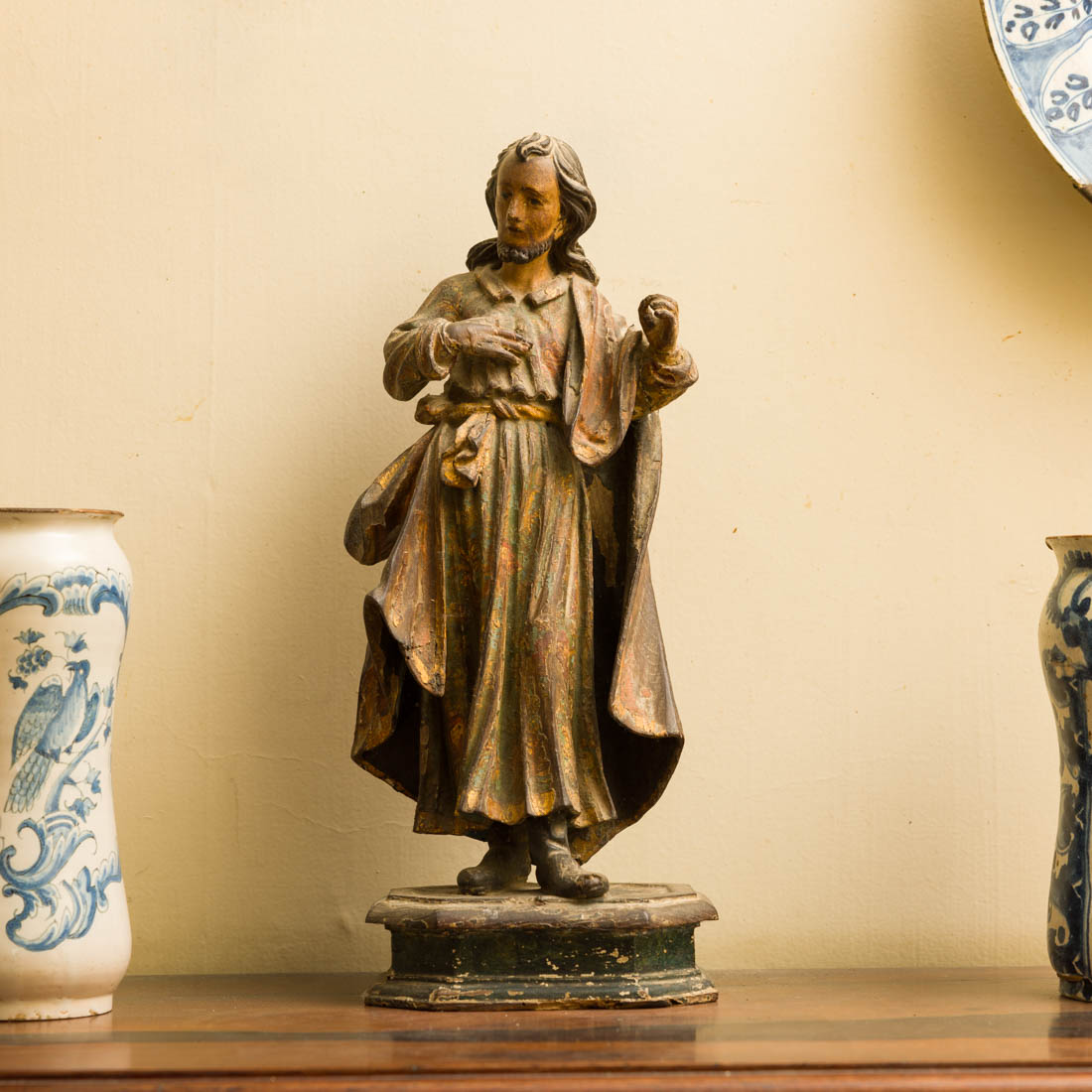 Escultura em madeira policromada e dourada. Séc. XVIII. Falhas, defeitos e falhas de xilófagos.