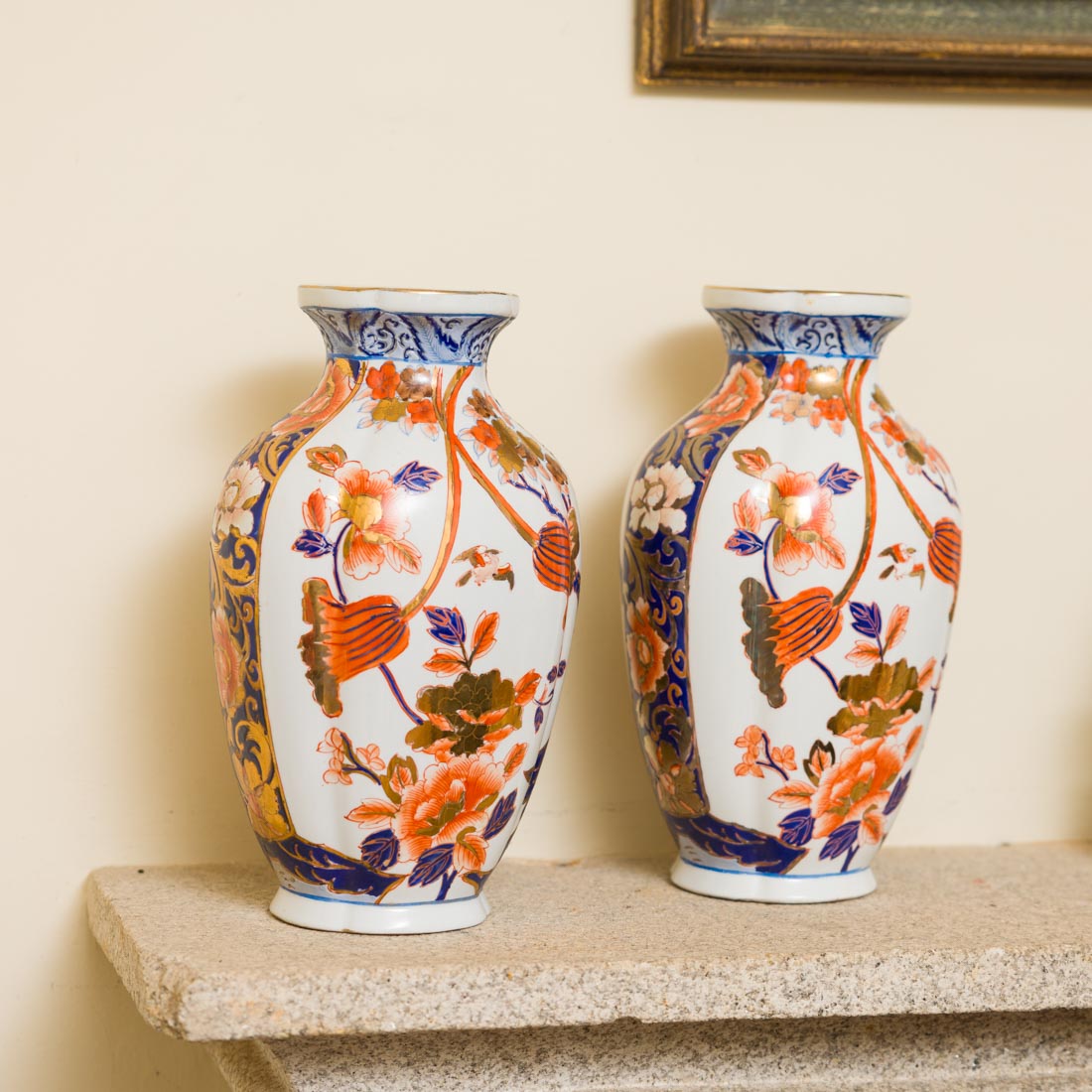 Em porcelana oriental, decoração policromada e dourada "flores e pássaros". Ligeiro desgaste.