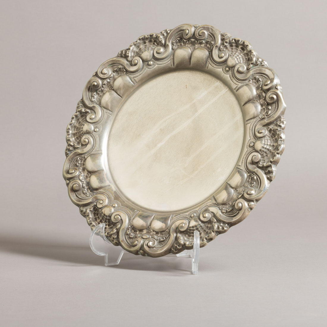Em prata portuguesa contraste águia (1938-1984) de 833,aba relevada decorada "enrolamentos e concheados". Sinais de uso.