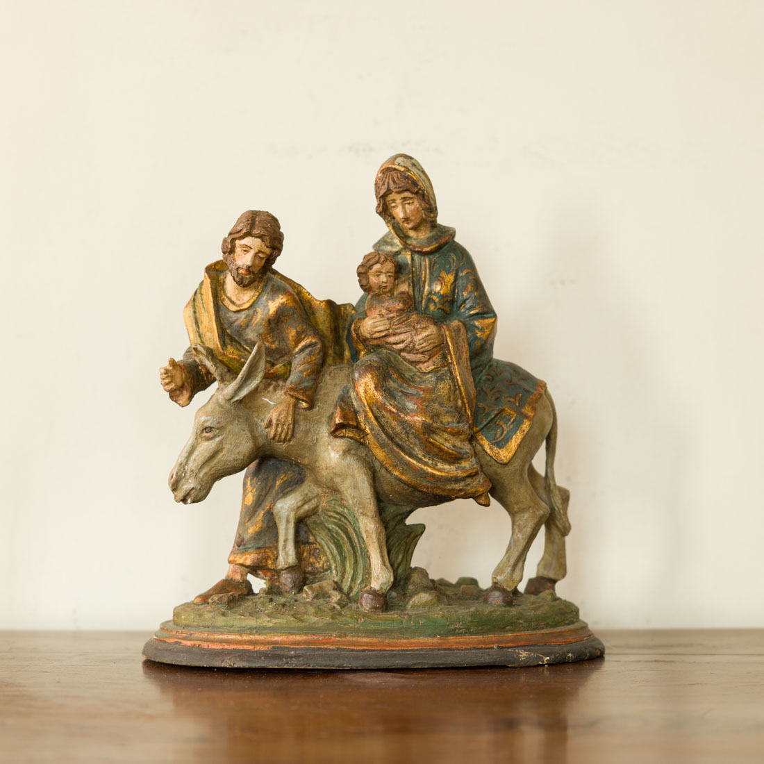 Grupo escultórico em madeira policromada e dourada. Pequenas falhas e defeitos.