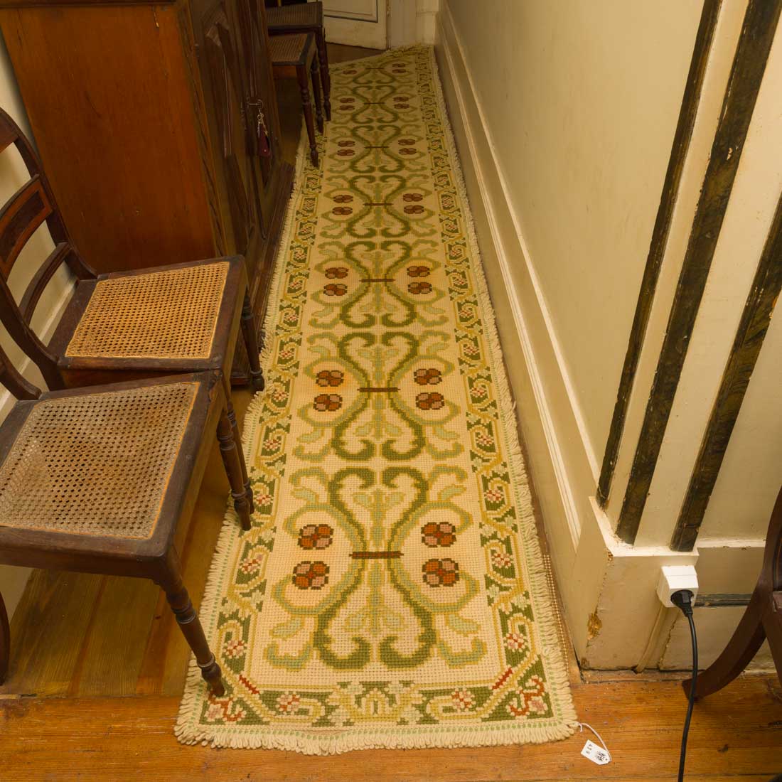Bordadas a fio de lã, decoração policromada com "elementos vegetalistas e flores". Alguns com desgaste, falhas e pequenos defeitos.