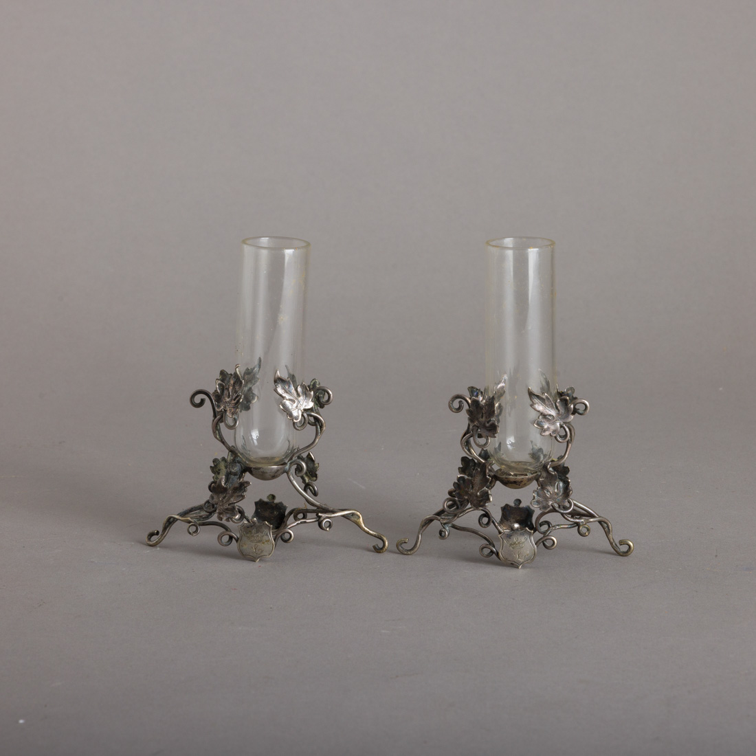 Em vidro, monture em prata portuguesa contraste javali (1887-1937) de 833, decoração relevada "folhagem", escudo e coroa de visconde gravado. Pequenas amolgadelas e falta uma folha.