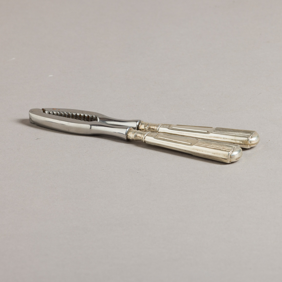 Cabos em prata portuguesa contraste águia (pós 1985) de 835, decoração canelada. Sinais de uso, pequenas amolgadelas.