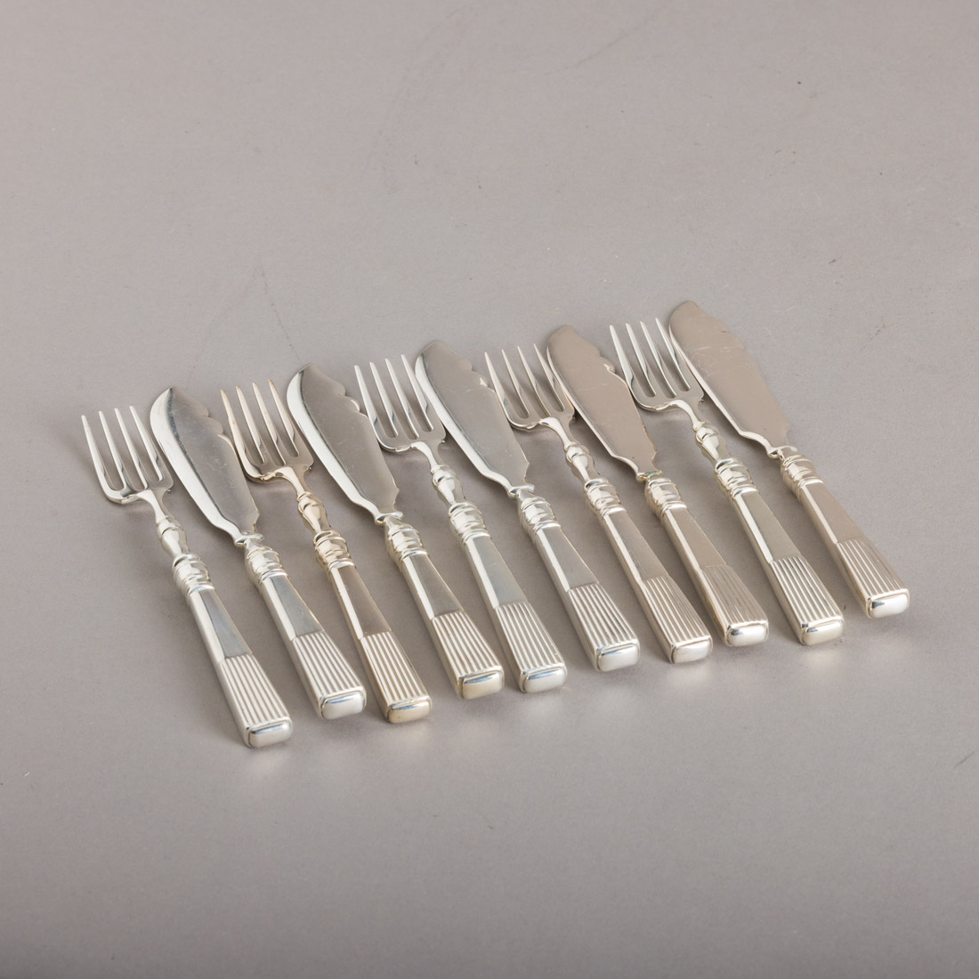 671. CONJUNTO DE CINCO GARFOS E CINCO FACAS DE PEIXE