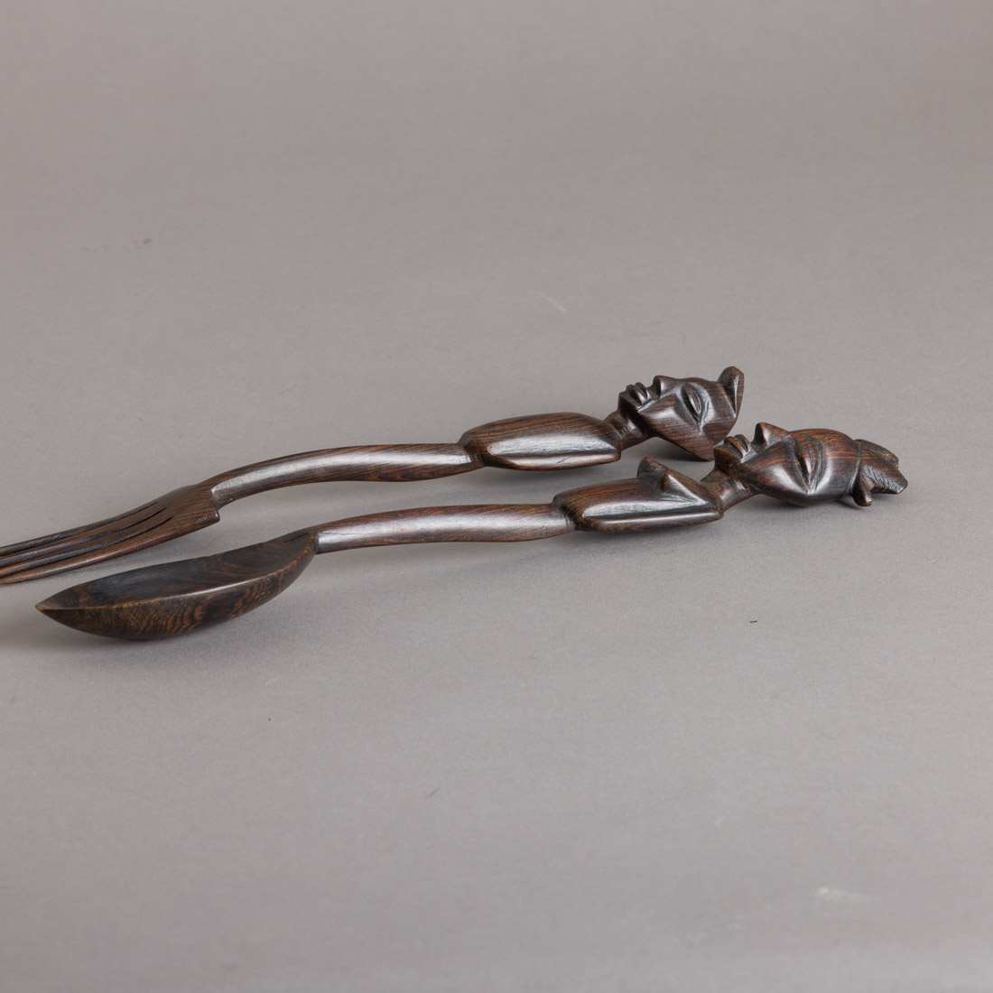 Em madeira exótica entalhada "bustos de nativos", Africa. Sinais de uso, pequenas falhas.