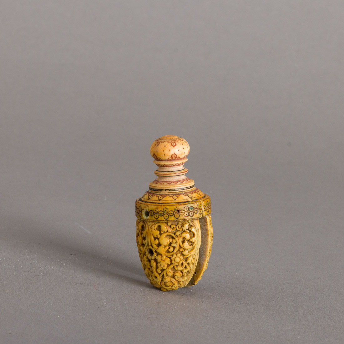 Esculpido em marfim. Séc. XVI/XVII. Ceilão. Restauro, falhas e defeitos.