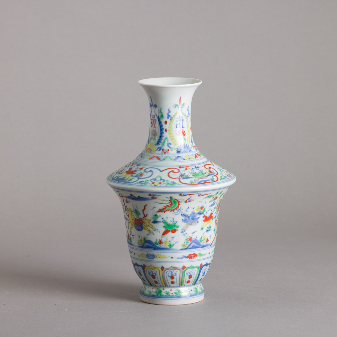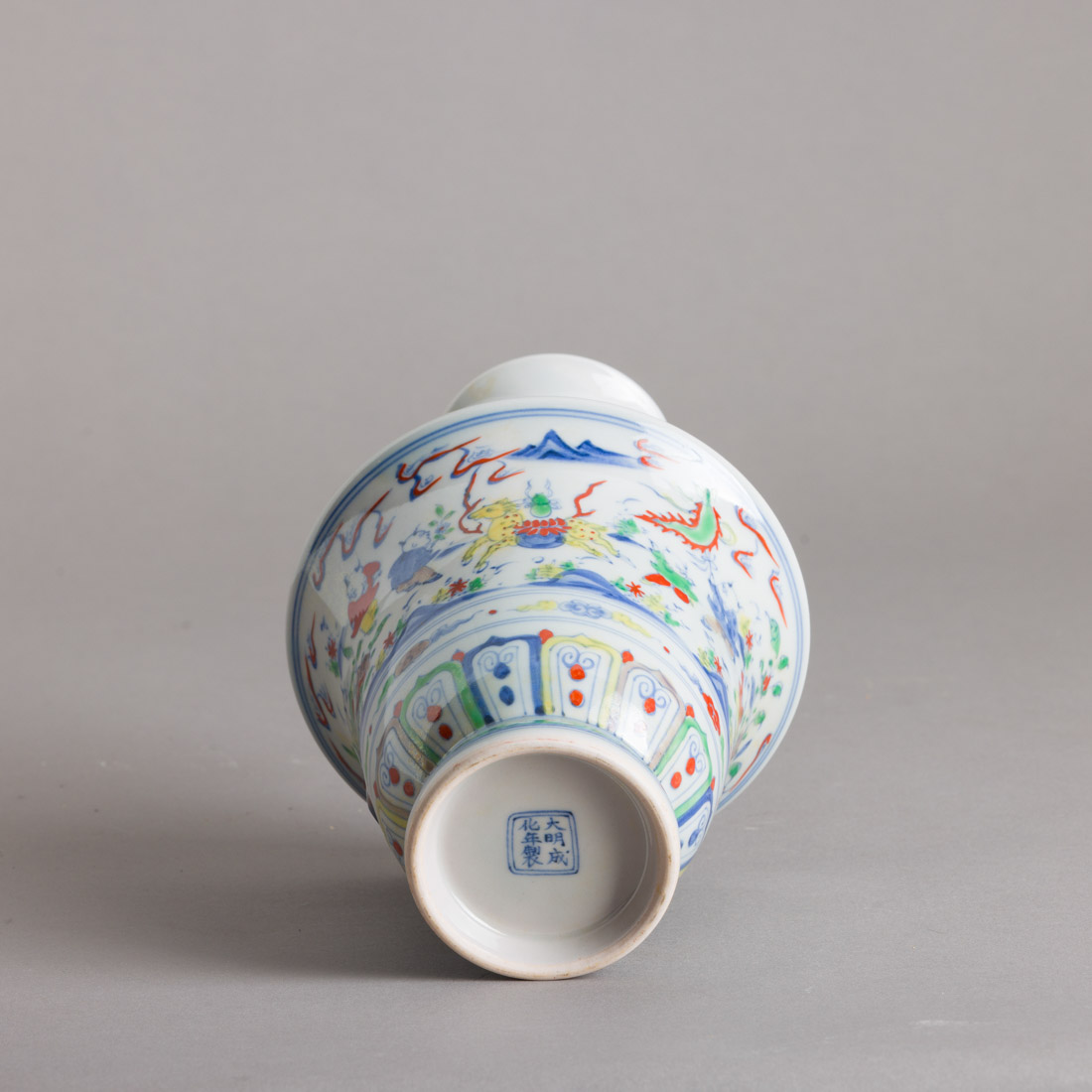 Em porcelana da China, decoração policromada com elementos vegetalistas e meninos a brincar. Marcada. Sinais de uso.