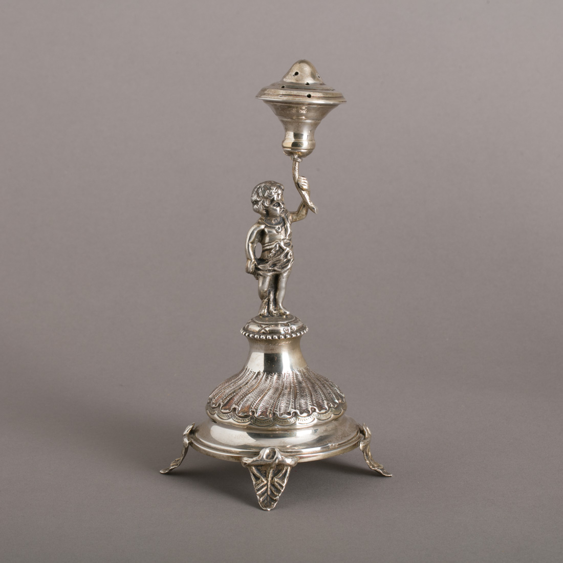 Em prata portuguesa contraste águia (pós 1985) de 925, decoração relevada, base redonda. Sinais de uso.