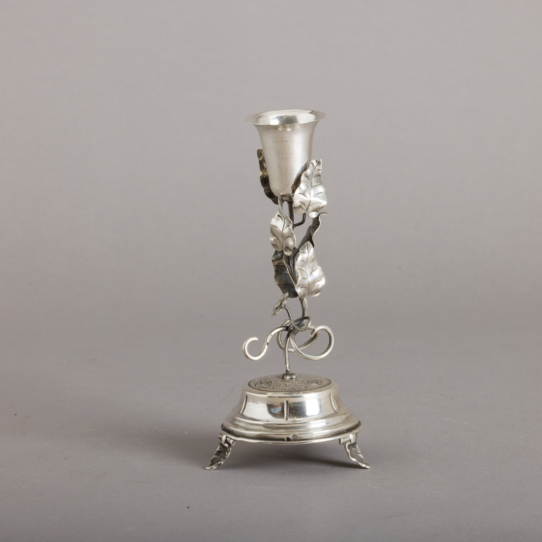 Em prata portuguesa contraste javali (1887-1937) de 833, decoração relevada e gravada, base redonda. Sinais de uso.