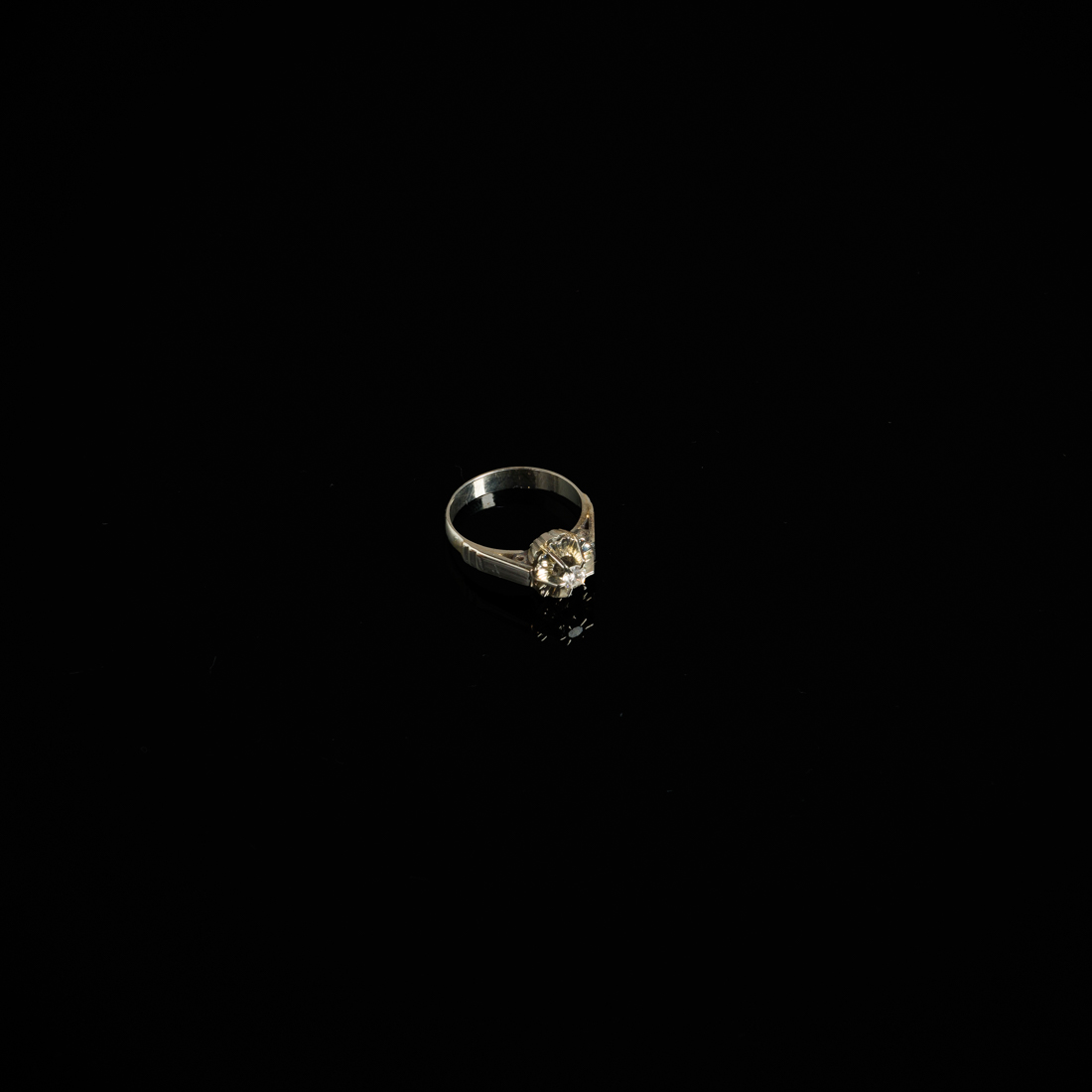Em ouro branco cravejado com diamante em talhe de brilhante. Sem marcas, ao abrigo do Decreto-Lei n.º 120/2017. sinais de uso.