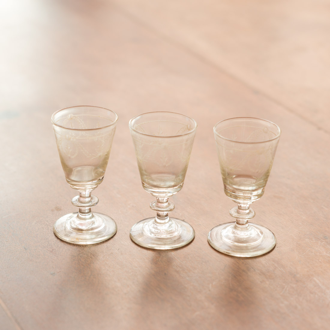 Em vidro gravado, decoração Neoclássico. Sinais de uso.