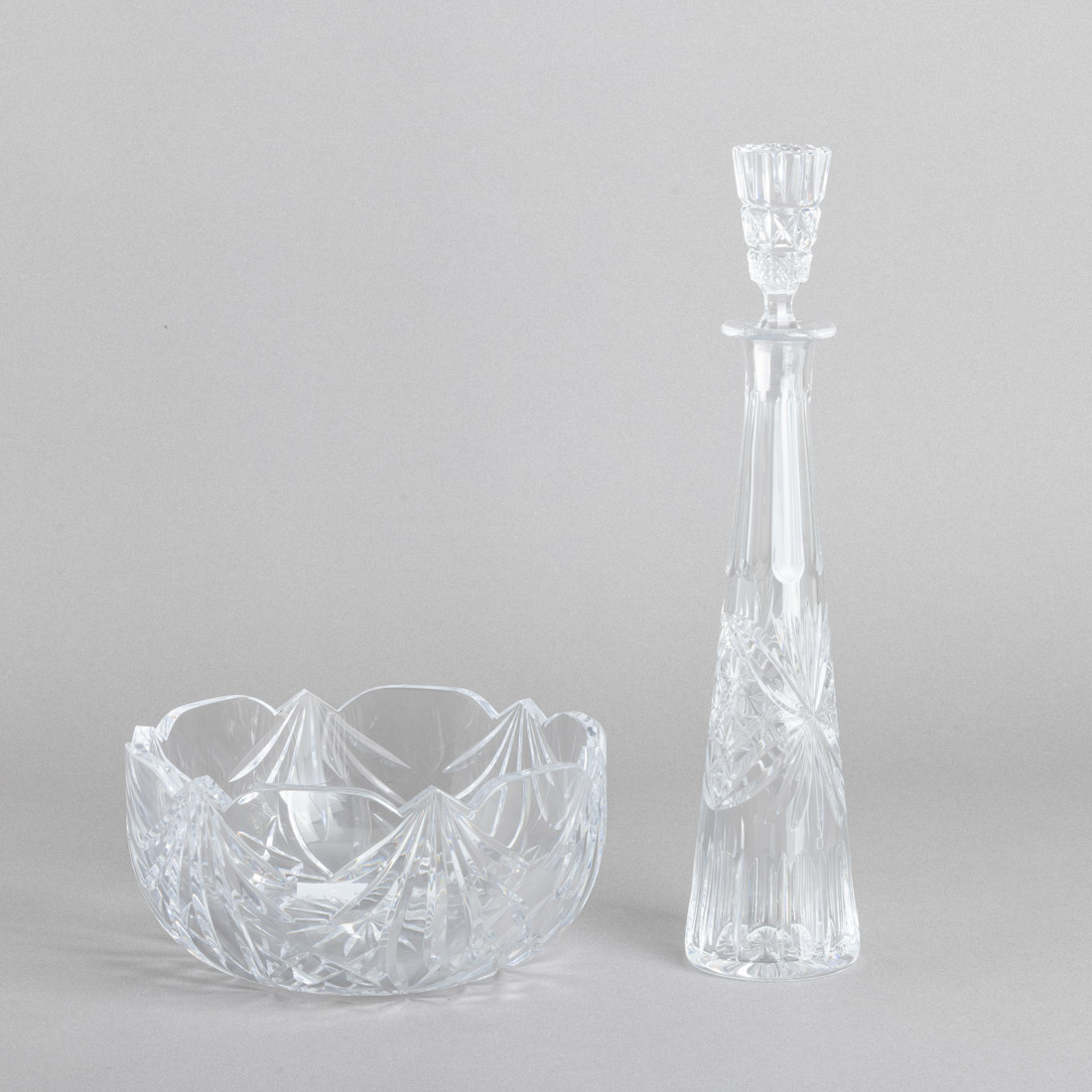 Em cristal, decoração moldada e relevada. Sinais de uso.
