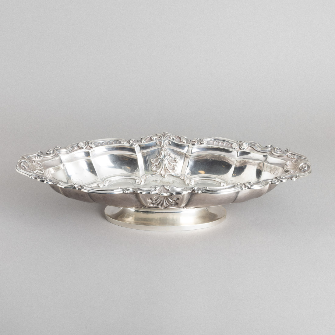 Em prata portuguesa, decoração relevada e gravada "enrolamentos, folhas de acanto". Sem marcas, ao abrigo do Decreto-Lei n.º 120/2017. Sinais de uso e pequenas amolgadelas na base.