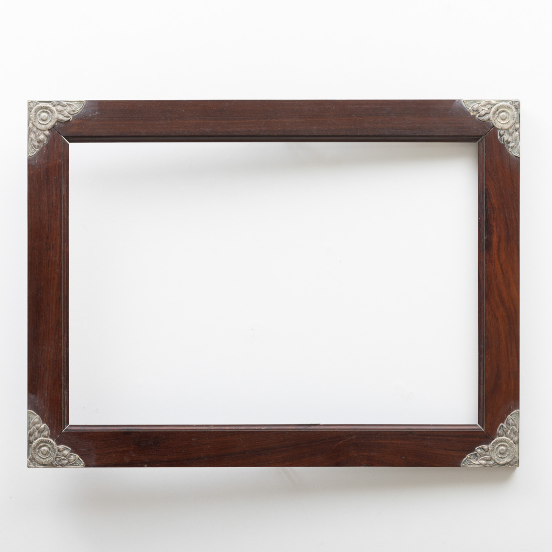 Em pau santo, aplicações em prata portuguesa contraste javali (1887-1937) de 833, decoração relevada "flores". Sinais de uso e pequenas falhas.