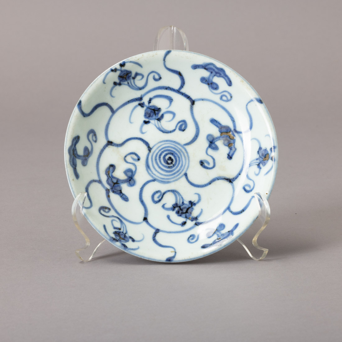 Em porcelana da China, decoração a azul. Marcado. Sinais de uso, pequenos defeitos de fabrico.