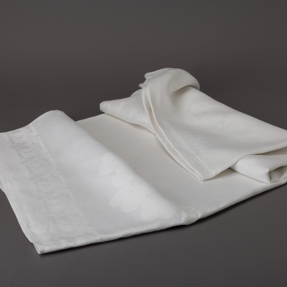Em tecido adamascado, decoração com trevos. Sinais de uso e pequenas defeitos.