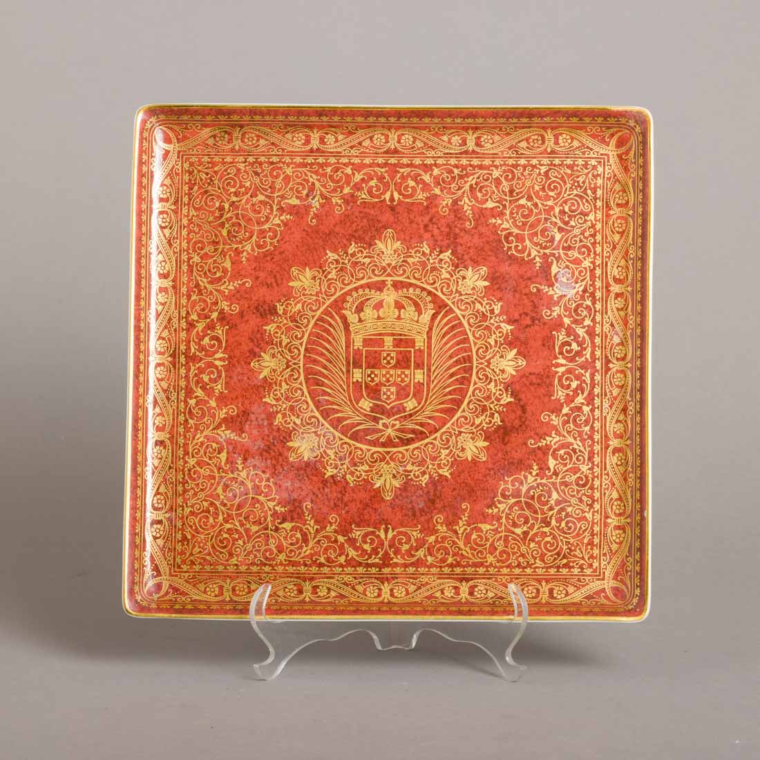 Em porcelana moldada (2005), Comemorativa do II Centenário da Biblioteca Nacional (1796-1996), decoração inspirada na encadernação, gravada a ouro, de um livro do Séc. XVIII, pertencente à Biblioteca Nacional. Edição especial. Sinais de uso. Dim.:26x26 cm