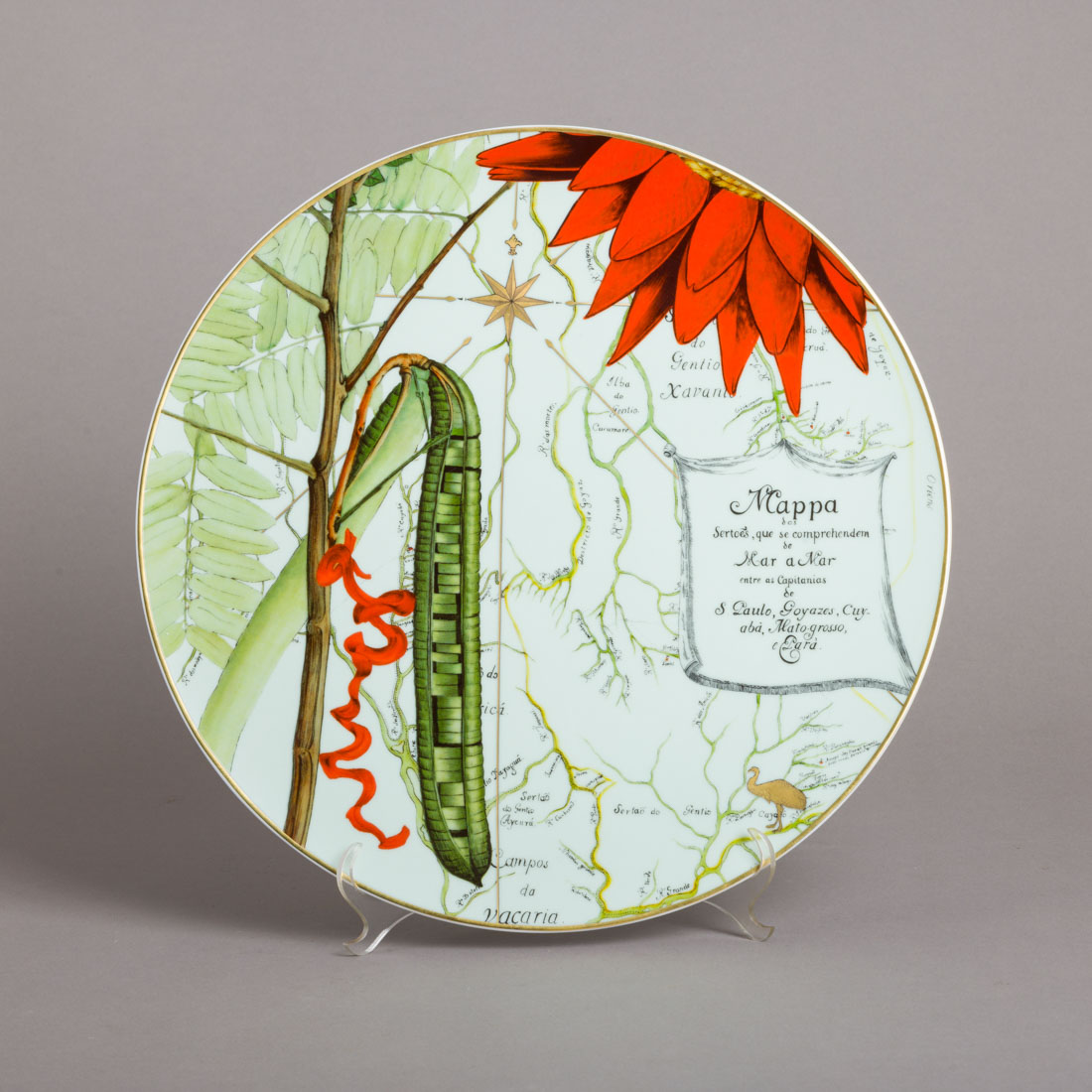 Em porcelana moldada, decoração policromada e dourada. Ecoarts "Amazónia". Com caixa.