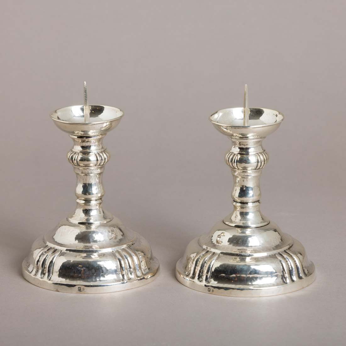 Em prata portuguesa contraste águia (1938-1984) de 833, decoração martelada e gomada. Sinais de uso, um com amolgadela.
