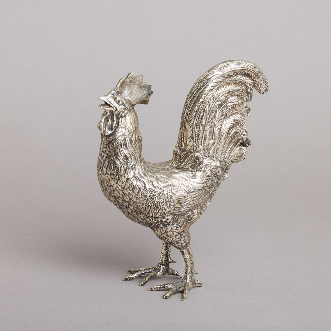 Escultura em prata espanhola de 915 marcas de garantia de teor (pós 1934). Sinais de uso.