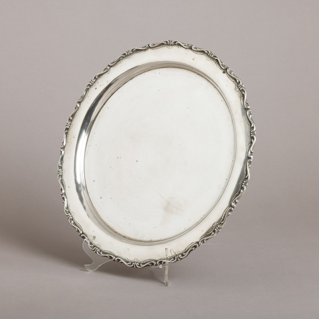 Em prata portuguesa contraste águia (1938-1984) de 833, bordo relevado e gravado. Leves amolgadelas e pontos de oxidação.
