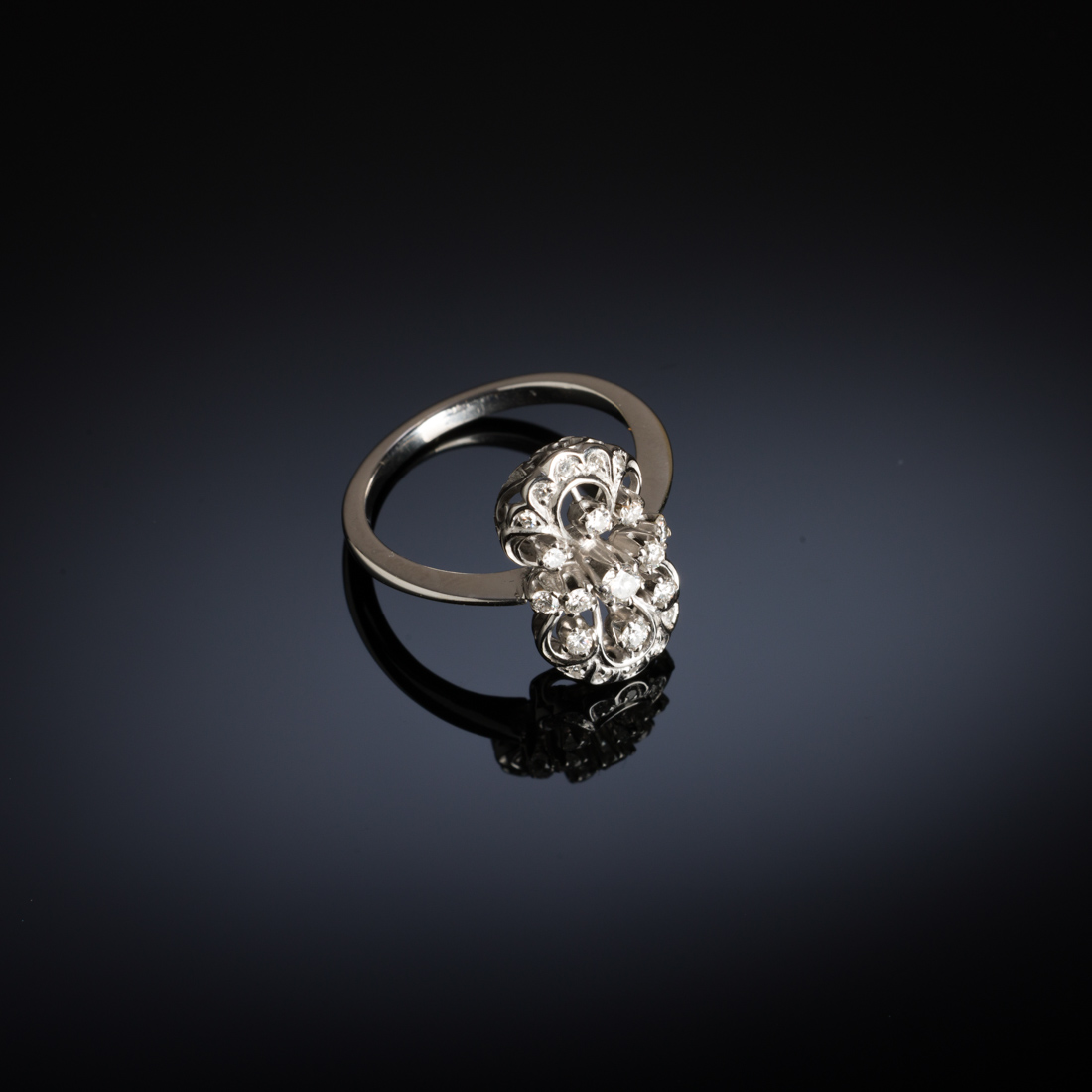 Em ouro branco português de 19,2Kt., contraste veado e pelicano (pós 1985) cravejado com diamantes em talhe de brilhante. Sinais de uso.