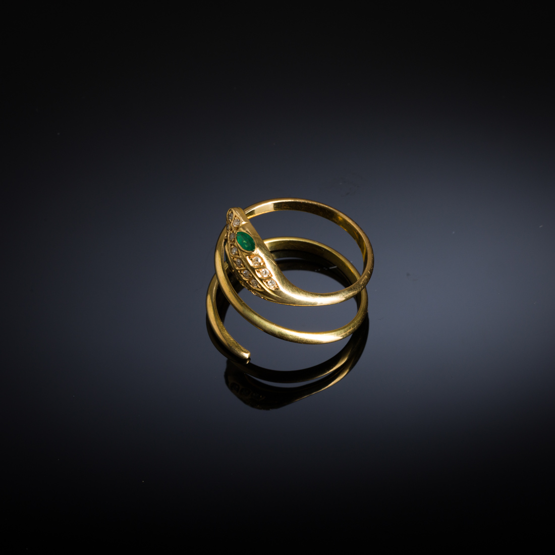 Em ouro português de 19,2Kt., contraste veado e galo (pós 1985) cravejado com esmeraldas em talhe navette e diamantes em talhe de brilhante. Sinais de uso, leve falha numa esmeralda.