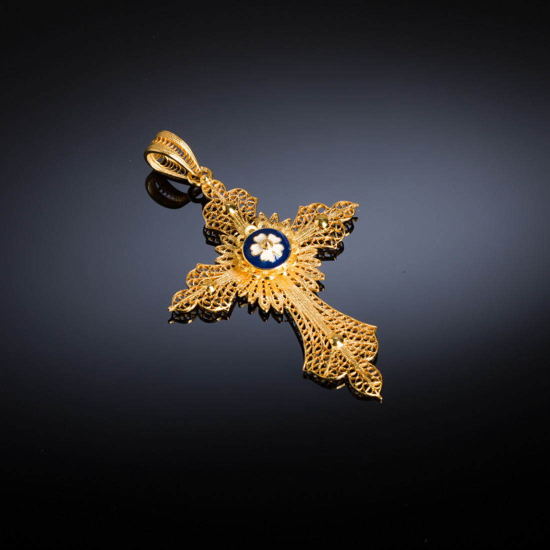 Em ouro e filigrana de ouro português de 19,2Kt., contraste veado (pós 1985) e esmaltes policromos. Sinais de uso.