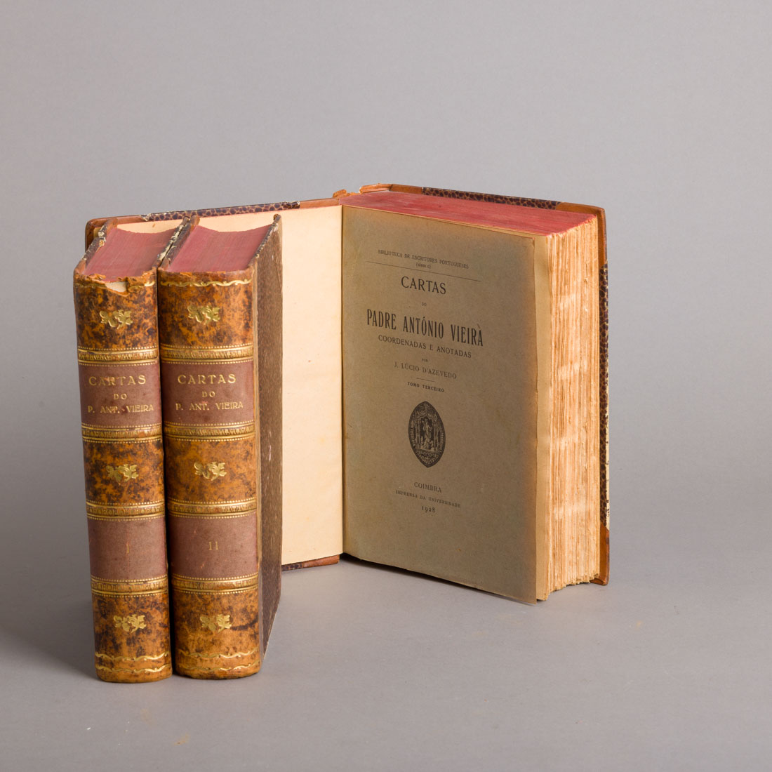 3 Volumes. Coordenadas e anotadas por J. Lúcio D'Azevedo. Coimbra Imprensa da Universidade 1925. Meia encadernação de pele. Sinais de uso e pequenos valores.
