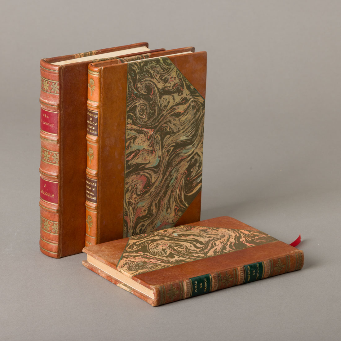 "Historia de Portugal" de Tomás de Barros, "A Relíquia" de Eça de Queiroz e "Leituras para o ensino primário" de Augusto e Américo Pires de Lima. Encadernados. Sinais de uso.