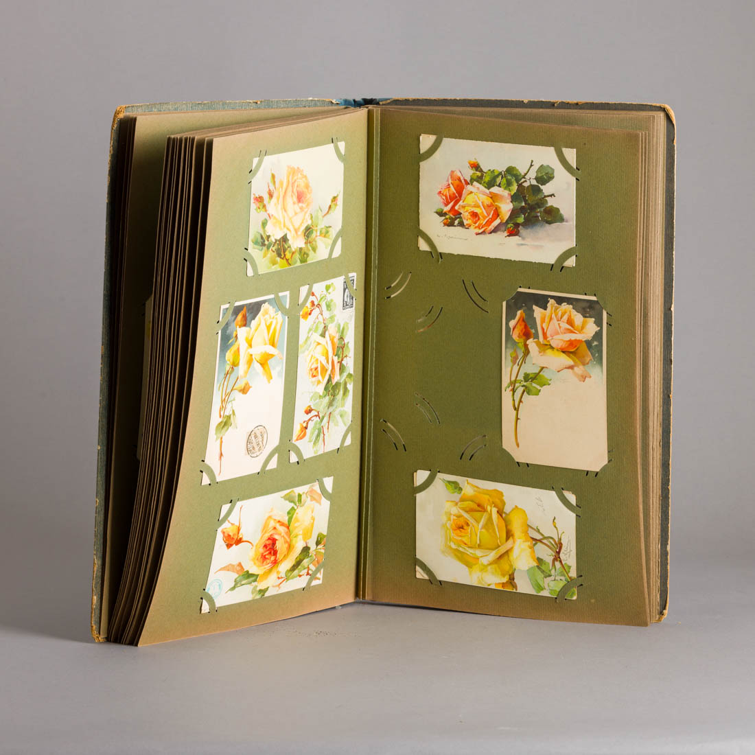 Composto por aproximadamente 191 postais coloridos com decorações florais. Defeitos.